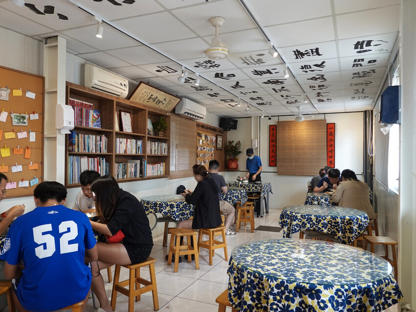 內用環境就像是在別人家中用餐般,算是挺溫馨的,花桌巾、牆面書櫃、書法字樣,都有著濃濃的人味。