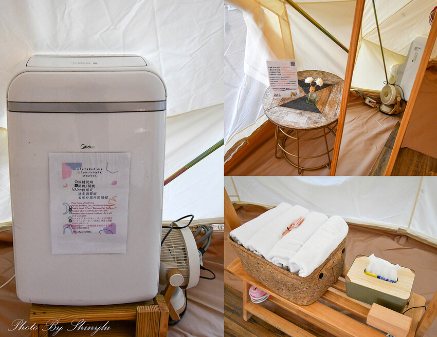 帳篷有移動式冷氣機、風扇、毛巾、耳塞、還有延長線插座(這個很重要,不怕沒有插頭可以充電手機)