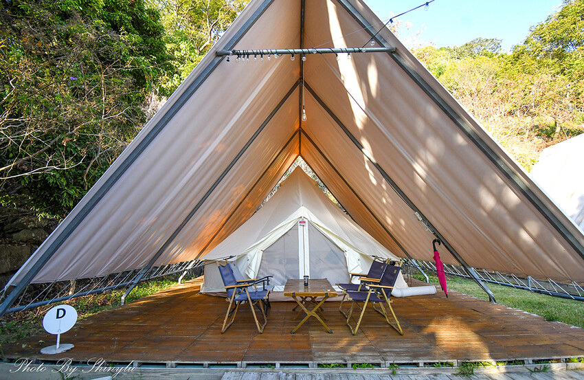 帳篷外有桌子及四張椅子,下午坐在這看夕陽、暢玩桌遊、划手機追劇都很棒