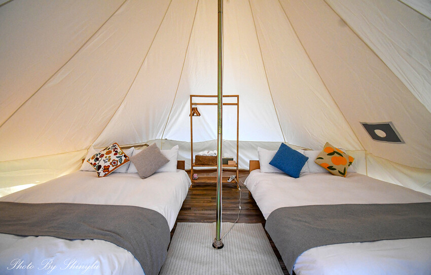 本來以為帳篷會很小,沒想到裡面放了二張雙人床,還有足夠的空間可走動,整體乾淨度表現的也很不錯