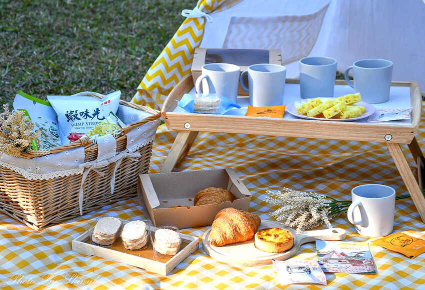 野餐活動包含:下午茶餐點、風格野餐組*1(內含裝飾旗、遊戲帳、花、木盤、野餐墊、野餐籃)