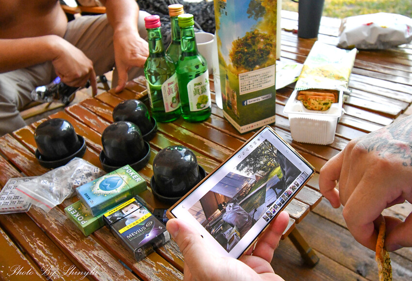 園區準備一大袋的野餐道具,讓我們自己佈置擺拍,這二位老男人直接在旁邊給我玩起來了…冏