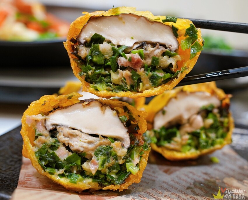 ▲這款炸香菇蚵即便放到冷掉,外層的炸衣還是一樣薄脆好吃,裡面的香菇入口會噴汁,口感很JUICY,搭配了滿滿的韭菜還有新鮮蚵仔,再沾上店家特製的醬料,真的很值得一吃唷👍