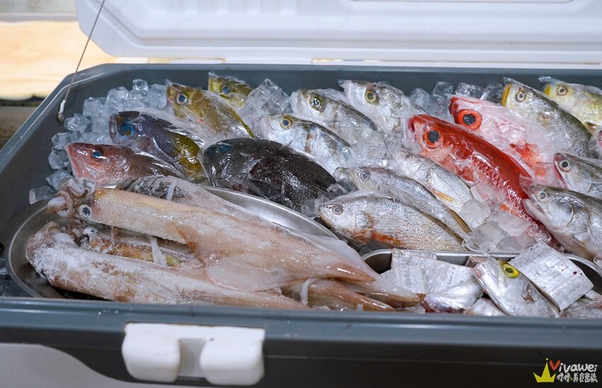 ▲店內有新鮮漁貨,這些魚的顏色都很美,某些品項還會用真空包裝保鮮!