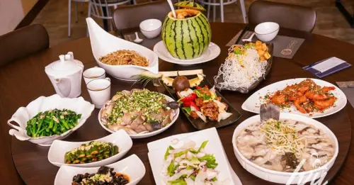 PA自己從小到大就愛吃粵系菜色,小時候鍾愛-港茶燒賣車與港式玉米濃湯,長對於而避風塘油雞屬於大菜,也極為喜愛,光看這滿桌粵菜料理太需要揪好友一起開吃,10道料理10 人份從開胃到甜品$9999 !