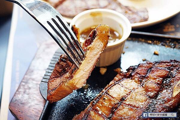 擺在盤中盛上桌看到烤成網格紋比臉大的牛排就讓人食指大動,10oz的份量讓人感覺會蠻有飽足感的。