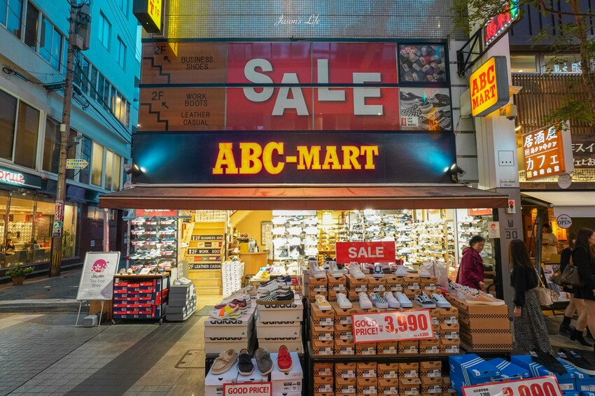有搭建屋頂,兩邊都是店家,有ABC MART、藥妝店、唐吉訶德都有
