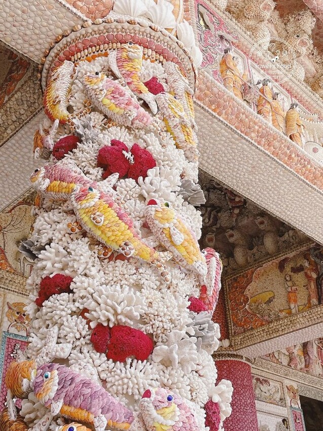密密麻麻的珊瑚貝殼推出的魚蝦蟹,頗有海底龍宮的味道,兼俱美感興創意,只能說師傅們太厲害啦!