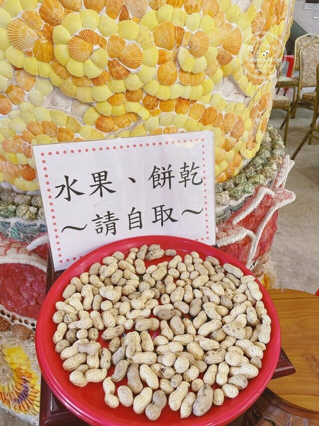 茶水、水果、餅乾、花生等皆可免費取用,這座廟實在很特別。