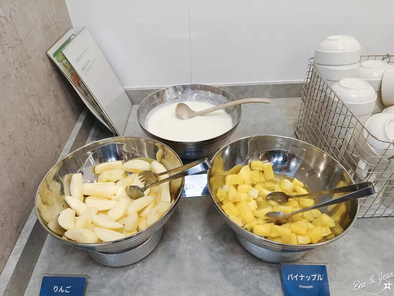 水果及優格!! 我是習慣加在一起吃。這裏的標示牌還滿友善的,至少都會放個英文