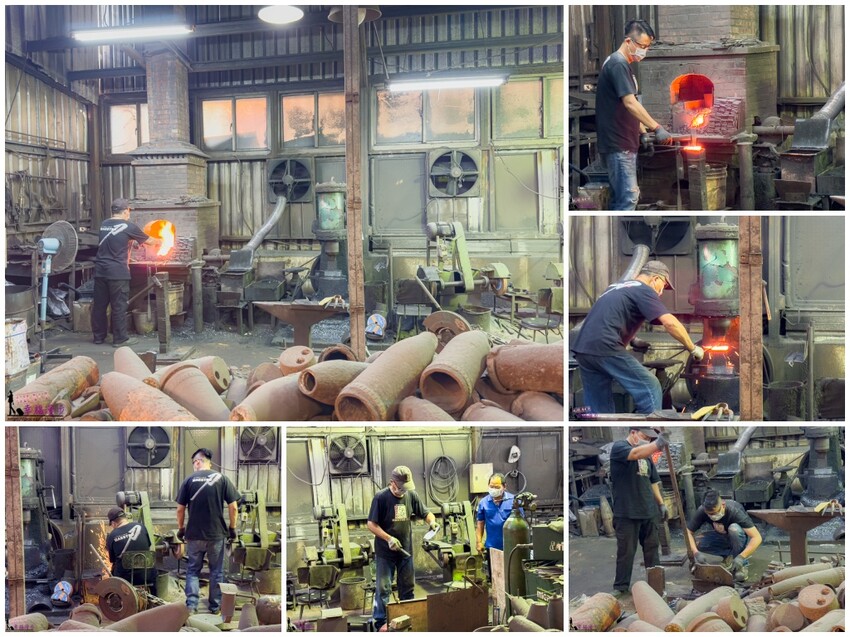 在日據時代因為剛才的物資短缺,所以當初就用盟軍轟炸遺留下來的砲彈殼試鍛刀具,就是鋼刀的起源,日後就是金門歷經砲火轟及,留下了很多廢彈殼,金合利就蒐購全島的廢彈殼,打造出金合利鋼刀,在觀光工廠每天的11:00和14:00會有師傅鍛造打刀演示,要來參觀時記得要抓準時間,整個製刀的流程就是先找出彈殼-切割彈殼-依刀具的用途將砲彈切割-鍛造鋼刀粗坯-鋼片炭爐加熱-加熱鍛造粗坯-粗坯修剪-研磨拋光,整個做工相當繁絮。