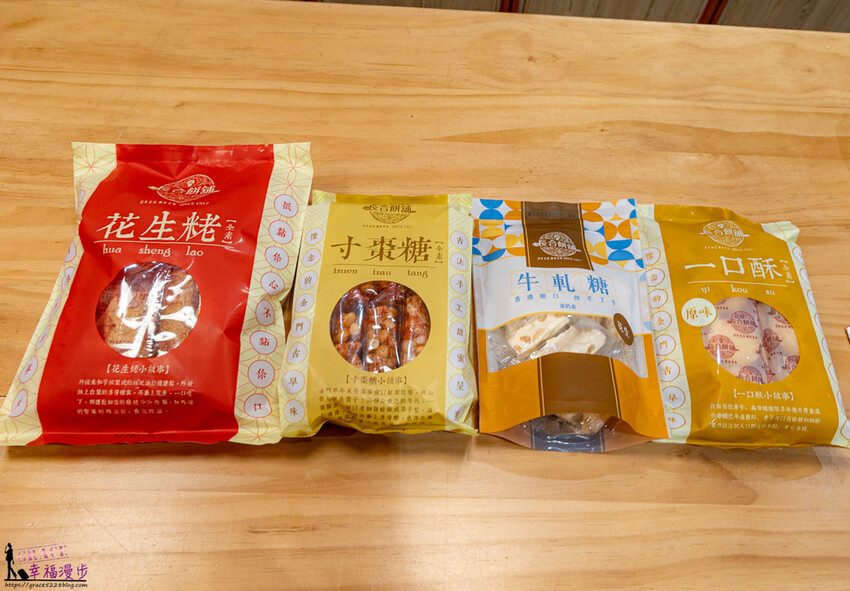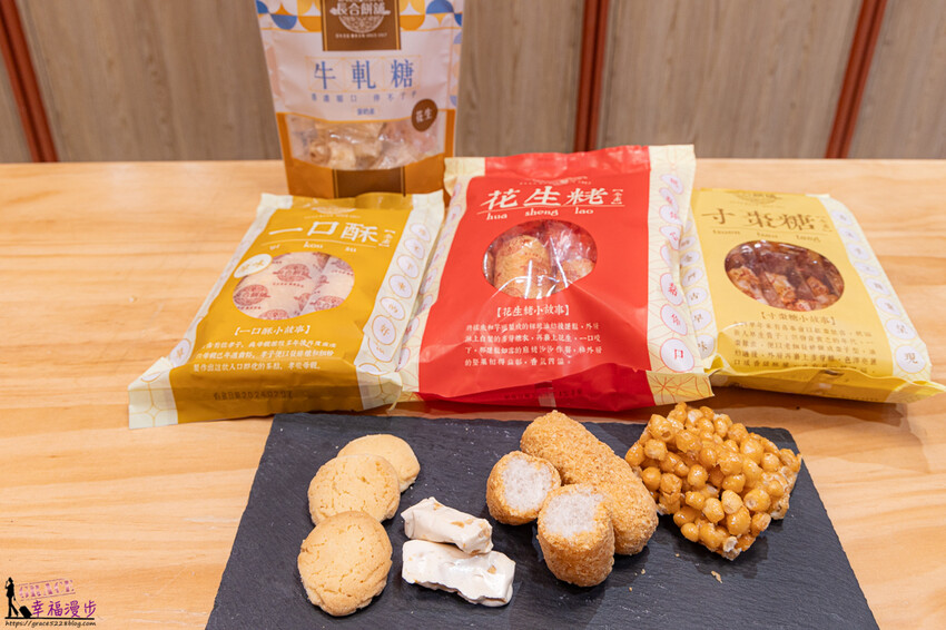 選了幾樣傳統糕餅買回家當伴手禮,有無尾熊最愛的花生粩、寸棗糖、牛嘎糖和一口酥,這裡的產品有很多全素的商品,素食者可以放心購買。
