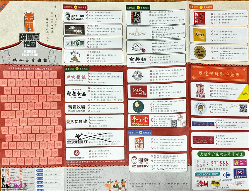 在租車的時候櫃檯人員給我一份『金門好厲害地圖』,如果有到地圖上面的店家消費只要拿出租車鑰匙就可以消費折扣跟集點,集好的點數在還車時給櫃檯人員會有贈品或現金回饋,這也太超值了吧!