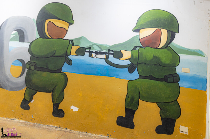 離雙口海濱不遠的L26據點也是挺好逛的,這裡是兩岸戰火時期,國軍為了避免敵軍趁著夜間退潮之際登陸雙口海灘而設立的軍事據點,現已經改成觀光地點,裡面有很多可愛的彩繪牆喔!