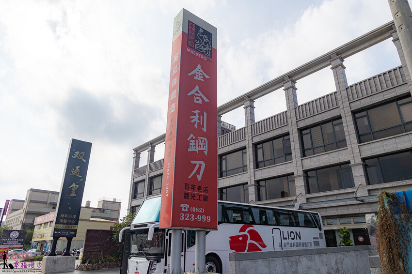 離開良金牧場後就前來金合利鋼刀觀光工廠,金合利鋼刀就位在伯玉路一段上,紅色的大招牌相當顯眼,金合利鋼刀是在1937年創立『金合利製刀廠』,那時候創辦人是肩挑鐵爐服務著全島,是整個金門老少皆知的打鐵師,目前已經傳承到第三代吳增棟師傅,吳師傅承襲了打鐵師的天生硬景和紮實的根基,將金合利鋼刀發展出更新的視野,成立一個觀光工廠,讓海內外的旅客來到這裡可以了解到金門製刀的過程和發展歷史。
