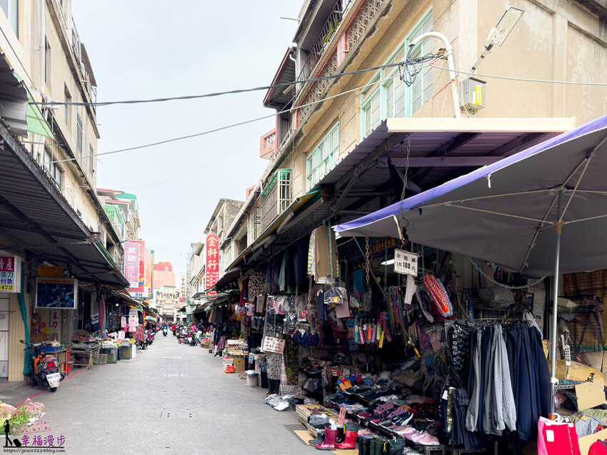 金城老街這裡也有很多的商店跟特產店,早上是菜市場,我最喜歡逛當地的市場,還可以尋找當地的小吃美食,路上還可以看到曬麵線的景色。