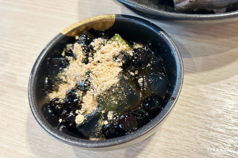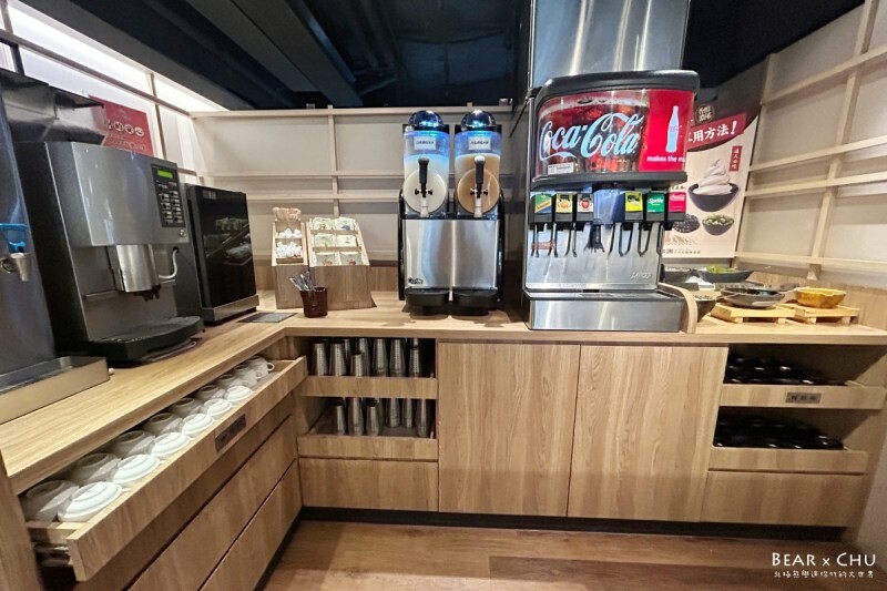 和牛涮的飲料吧就是常見的汽水、冰沙、咖啡茶飲等,品項中規中矩。但甜點的部分還蠻有日式特色,是抹茶口味的晶凍加上黑糖蜜與黃豆粉品嚐,也有提供好吃的黑糖珍珠可以添加,也可以自己選擇和霜淇淋搭配,變成一道豪華的霜淇淋點心。