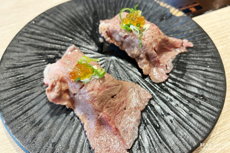 和牛涮的炙燒和牛握壽司真的很美味,稍微炙燒剛剛好熟度、嫩嫩的和牛肉片,加上青蔥和鮭魚卵增添風味,底下的米飯份量也還好,多吃幾個也不會太飽,還好我們選了可吃到開新的價位,不然炙燒和牛握壽司真的吃一個會不滿足。
