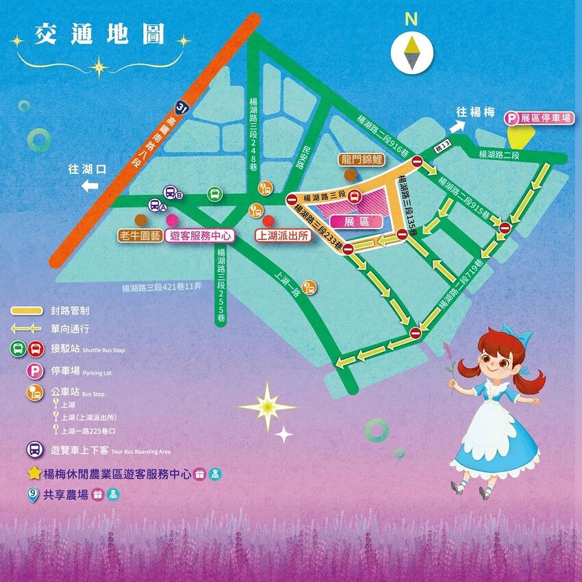 遊客服務中心→龍門錦鯉→台塑耀輝→楊梅火車站→台塑耀輝→龍門錦鯉→遊客服務中心