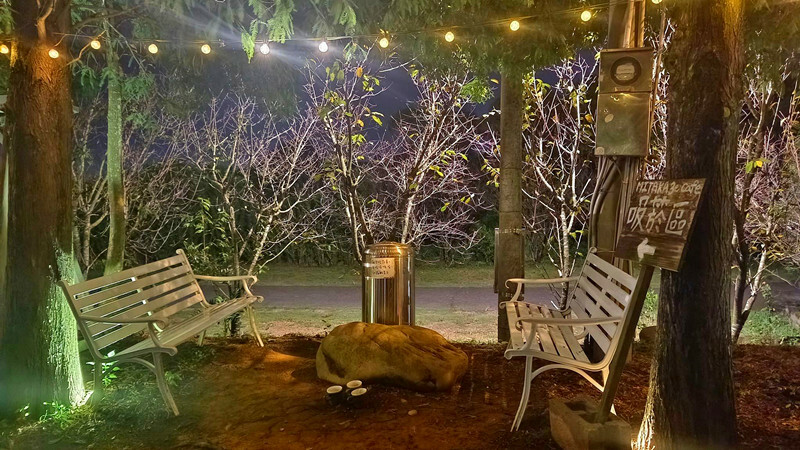 停好車往園區方向走,沒想到落羽松樹下還設置了這個吸菸區