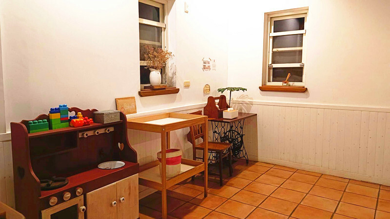 很難想像擺了玩具式小廚房和尿布台的地方,竟然是他們的廁所吧?