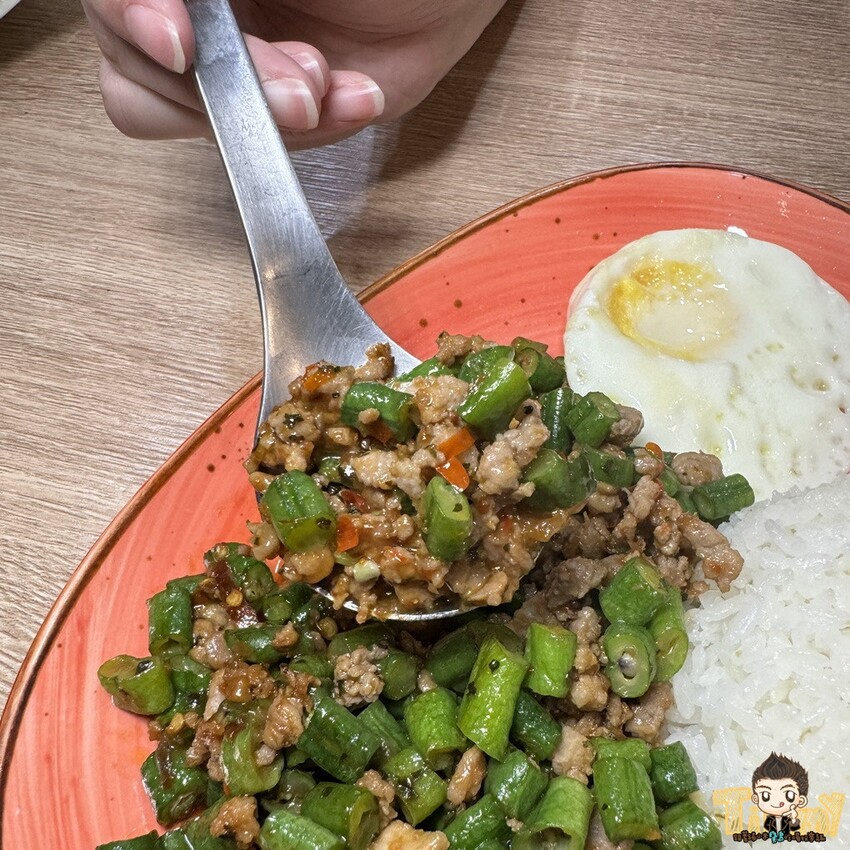 打拋豬有豆角及絞肉,鹹中帶甜口味超下飯的,辣度屬於小辣,不能吃辣的朋友點餐時可以跟老闆娘說