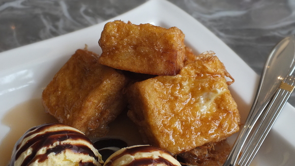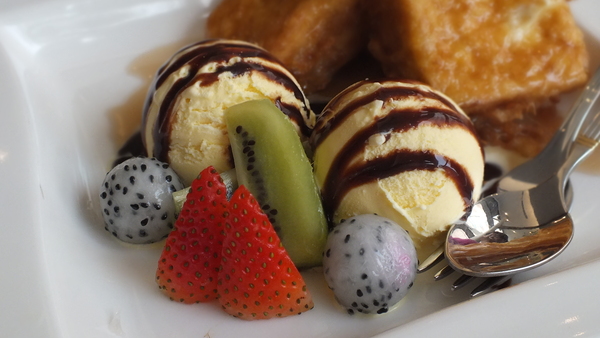 妞妞那時看到這盤甜點一直說:那個吐司弄的好像臭豆腐喔!