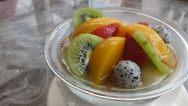 是使用古法的山水豆花跟多種新鮮水果搭配而成