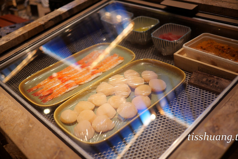 喜歡吃炙燒握壽司,有提供和牛、比目魚、蒲燒鰻魚箱壽司、干貝海膽握壽司等,可以選自己愛吃的口味,Tiss個人很愛炙燒的握壽司,而且注重醋飯的口感,島語自助餐餐廳的握壽司醋飯非常好吃,酸度、黏度都恰到好處,完全不輸高檔壽司店