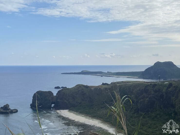 登上涼亭後映入眼前的是柚子湖聚落,這裡集結了藍洞、翠湖、彎弓洞、硓𥑮石古厝等景點。正下方就是天然泳池「藍洞」,左前方還可以看到「彎弓洞」。參考文章:【綠島藍洞+大小翠湖】超美天然泳池!跳水浮潛秘境快收藏