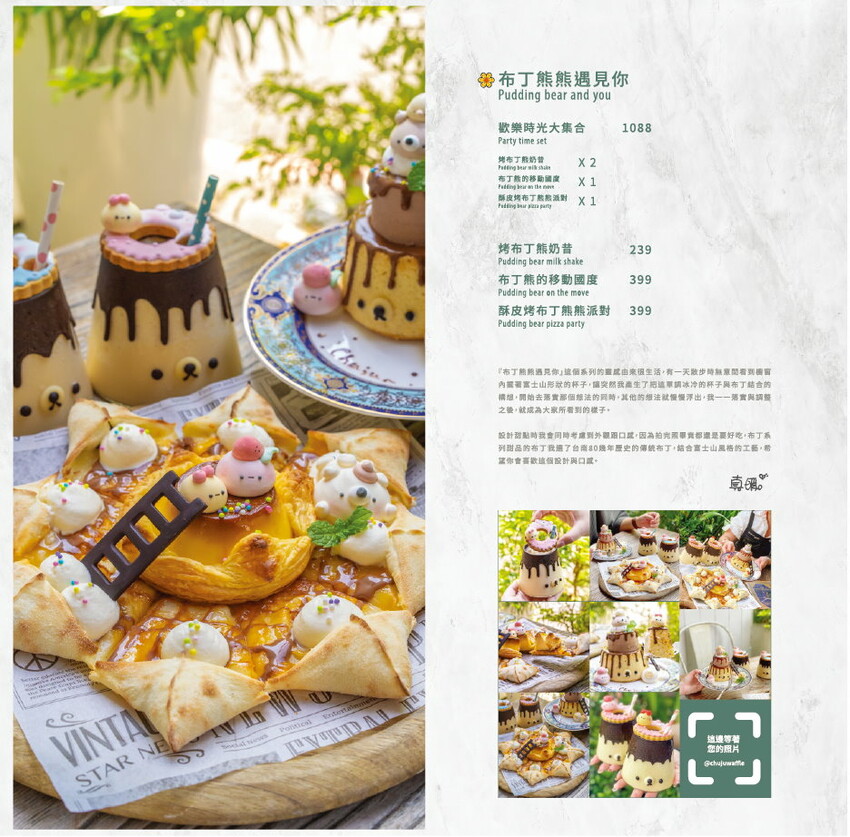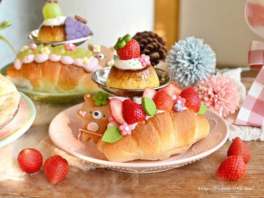 沒想到塩可頌也可以這麼美吧!將現烤塩可頌夾入包有草莓冰心內餡的麻吉,搭配粉嫩的草莓香堤及新鮮草莓,最後放上手工造型餅乾點綴,現烤塩可頌外酥內軟,裡頭麻吉不僅Q軟還會勘西,加上冰心草莓餡,整體吃起來酸酸甜甜的,好吃不甜膩,一旁還有附上手工布丁佐上新鮮草莓,整個吃完超有飽足感