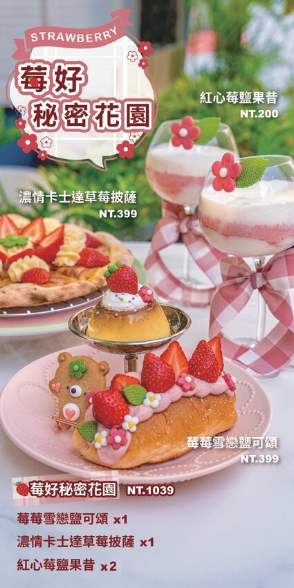 濃情卡士達草莓披薩 399元