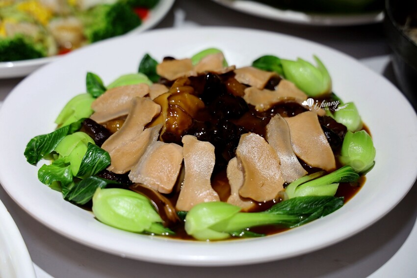 討喜的食材有鮑魚、烏參與豬蹄筋,QQ的口感及滿滿的膠質,蠔油醬汁微甜充滿著海鮮美味。