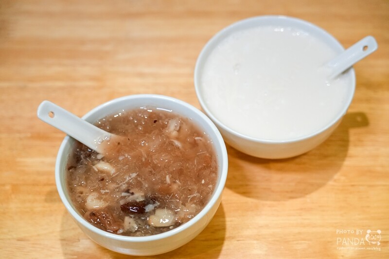白木耳蓮子百合甜湯口感就像果凍般滑順口,喝起來清新香甜。蛋白杏仁茶喝起來很順口,有點香甜的味道。