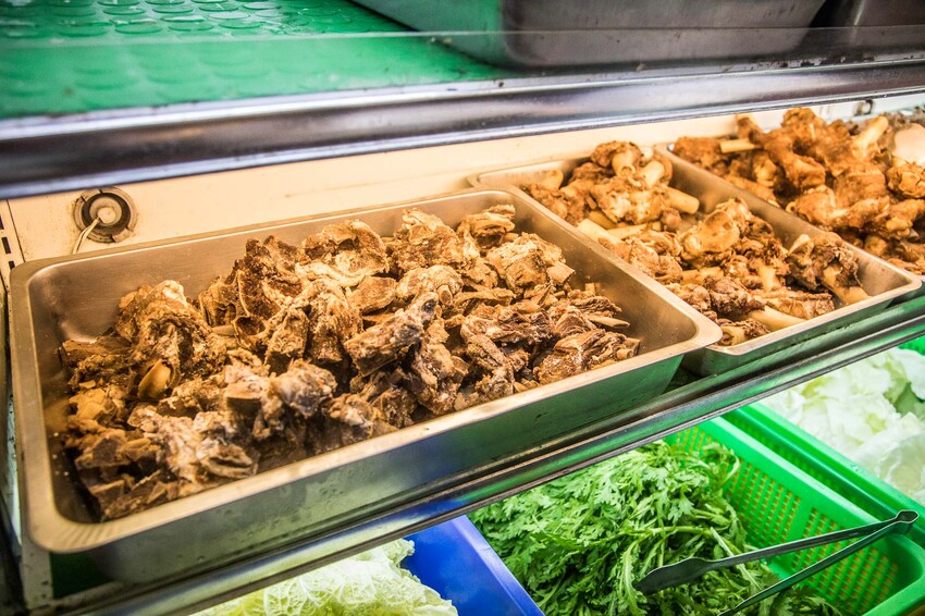 這裡的羊大骨尺寸真的大,肉嫩又多,而且骨邊肉還有膠質感,肉真的非常嫩,幾乎用筷子一撥就能骨肉分離,不管是煮藥燉或是清燉湯頭都很好吃