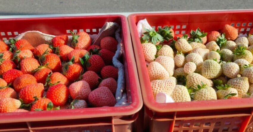 除了常見的草莓品種,白草莓近年也成為草莓界的新寵兒,不過除了進口的日本白草莓外,現在來到新竹關西也可以自己採囉!長鑫莓果農園很特別,全區採用 IPM病蟲害整合管理,標榜無農藥,並有香水、豐香跟桃薰等不同品種,若不知道怎麼分辨,順著淡淡的蜜桃香去準沒錯!而採白草莓的撇布,就是看種子轉乳白色或是種子帶紅就能採,園區主人也會大方分享各種草莓冷知識喔!