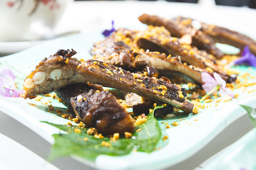 這個肋排同樣表現相當亮眼,烤到表面焦香的肋排,火候控制的很到位。上面的蒜酥讓這豬肋排口味更加分。