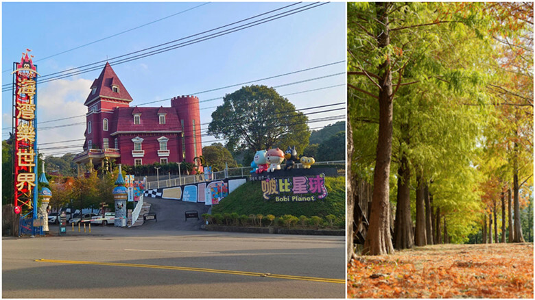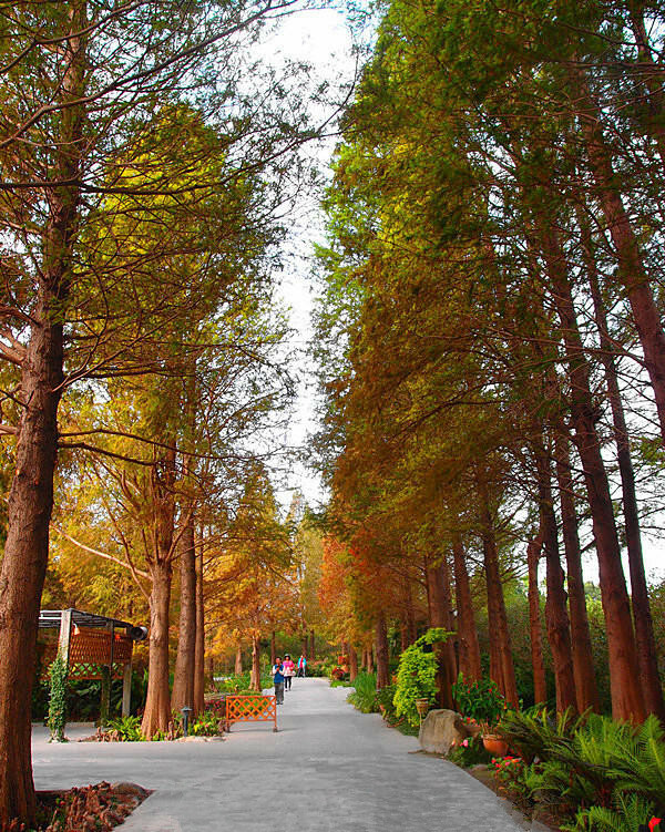 園內也有種植大片落羽松,加上園區內的歐洲造景,拍起來很像在國外呢!