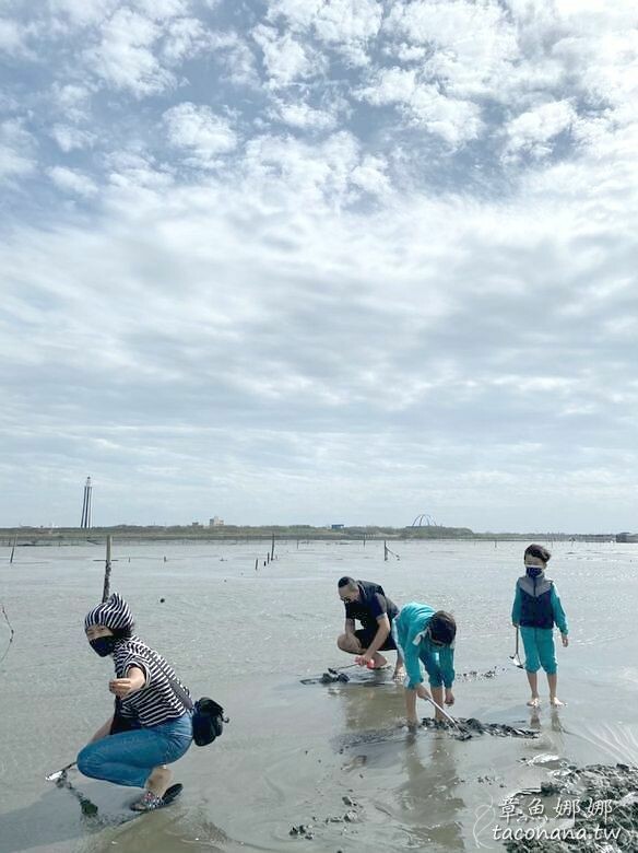 來彰化王功採蚵挖蛤蠣真的是挺有趣的!這次我們搭上採蚵車前往潮間帶,從遊客中心搭車,沿路採蚵車的聲音啵啵啵啵超大聲,回憶起小時候鄉下姑丈帶著我們採橘子,也搭過的這樣的鐵牛車!