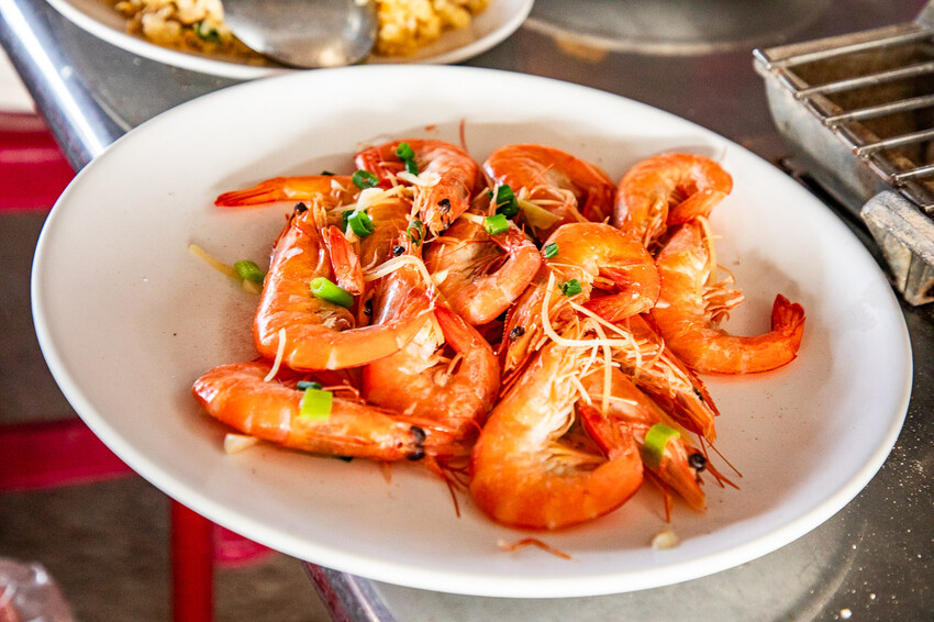 燙白蝦,也點生的白蝦來烤,如果不想烤店家可以代勞川燙,不想佔烤爐位置就川燙,白蝦新鮮就好吃,QQ嫩嫩甜度高,這樣一盤180元算便宜的!