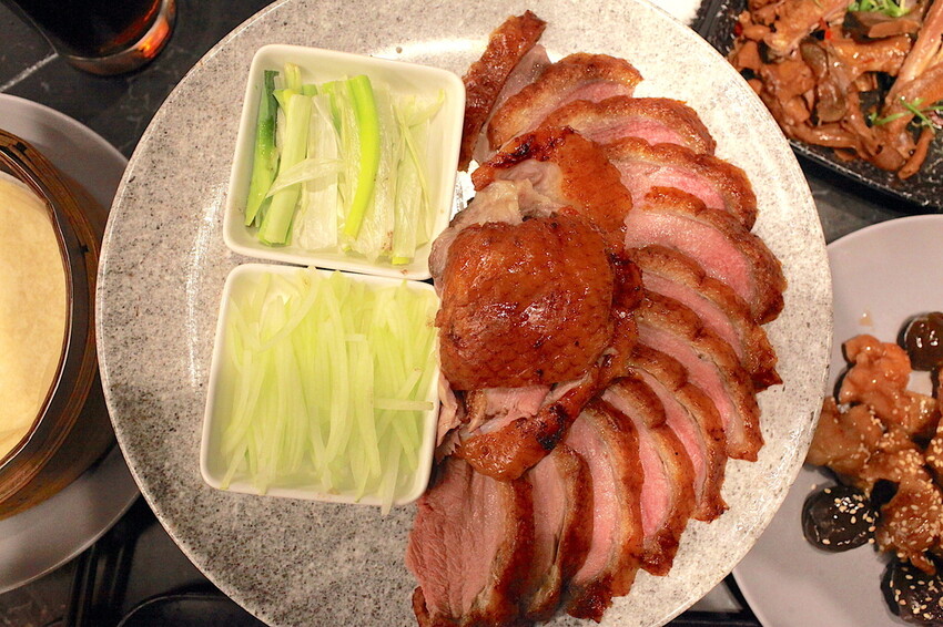 這烤鴨搭配不同醬汁跟配料一起吃開胃好吃