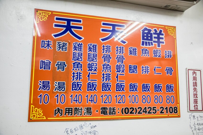 天天鮮排骨飯就在孝三路的巷子裡面,真的是要內行人才知道,怕你找不到在巷子口還做了一個招牌,遠遠巷子就看到一堆人在排隊,內用要依序排隊,外帶就直接進去點就好,也可以打電話預訂