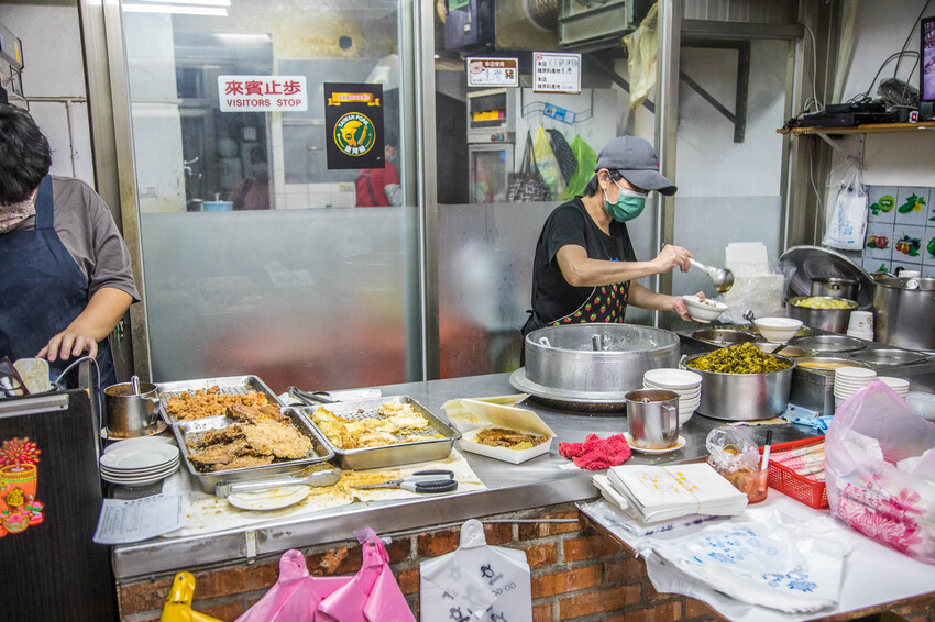櫃檯的阿姨拼命的裝便當,後場的炸排骨也是不間斷地一直出貨,雞腿七早八早就賣完了