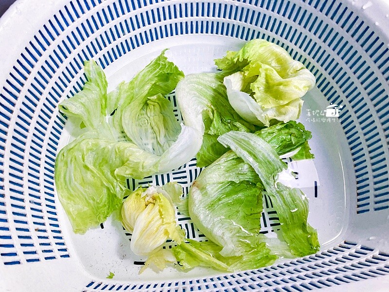 生菜,去掉老葉清洗後再用食用的水浸泡幾分鐘再用脫水器或廚房紙巾擦乾後切絲備用
