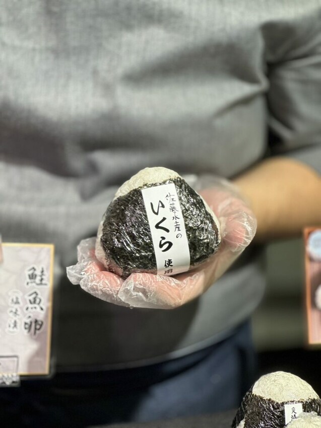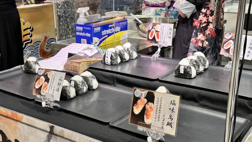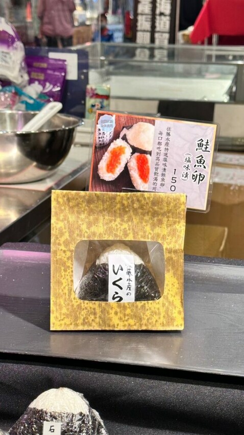 來自北海道,使用北海道的七星米,製作新鮮現做的飯糰,有好幾種口味可以選擇,最多人點的是鮭魚飯糰,一顆150元,三顆400元。