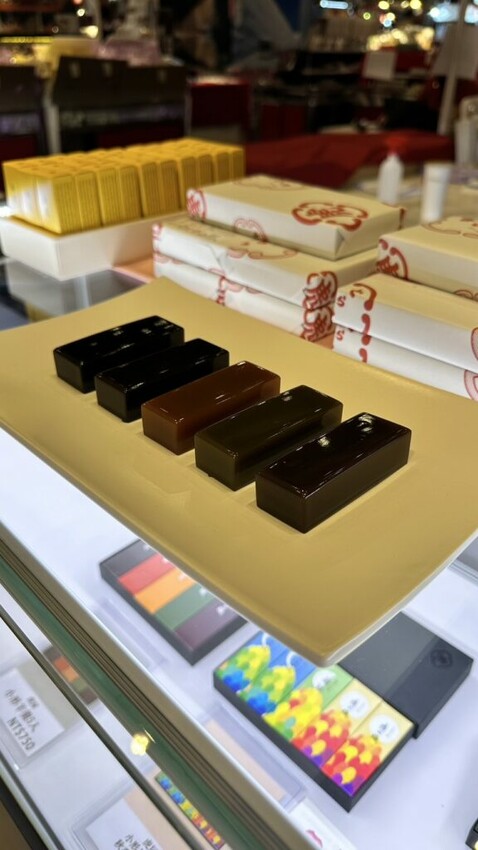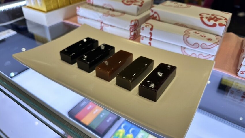 有500年歷史的羊羹,可以搭配無糖茶或無糖咖啡,比較經典有五種不同口味,可以ㄧ次嚐試不同口味的羊羹,季節性的羊羹,有秋天的富士山、秋天的月亮(秋天的月亮是地區限定,在日本要買到的話要到靜岡縣御殿場買)