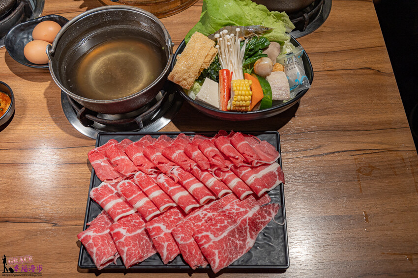 因為人潮真的太多了,就不打擾客人用餐,趕緊坐下點餐了,餐點內容很多,就是先點好主餐再點湯底跟附餐,蔬菜盤都是固定,這個是犇鍋搭配原味湯底。餐點MENU可以到店家粉絲頁參考。
