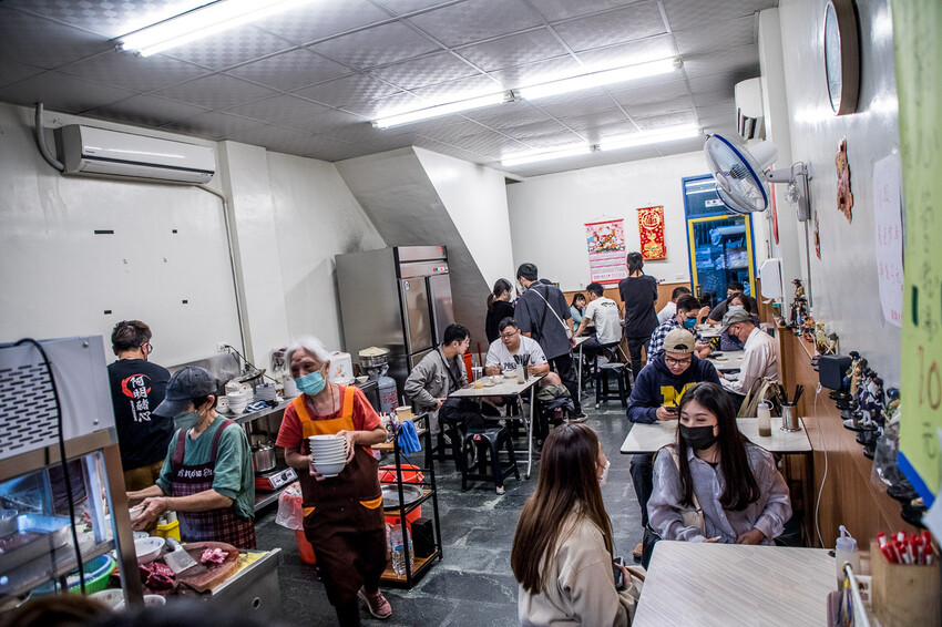 阿明豬心金華店生意也是超級好,我們是打烊前一小時來,店外還是排一長串的人,不管內用、外帶都在排隊,內用等排到你店員就會幫你帶位,用餐環境很寬敞舒適