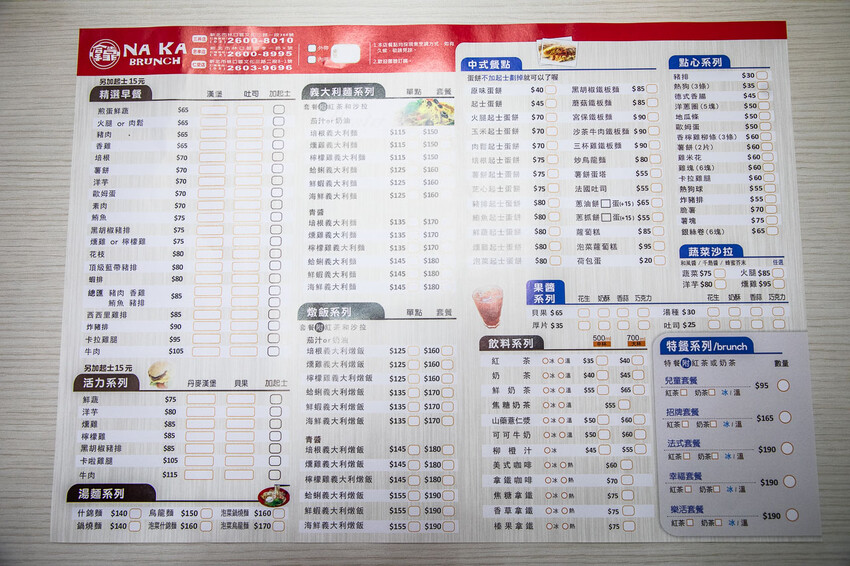 拿靠早午餐 林口仁愛店|菜單
