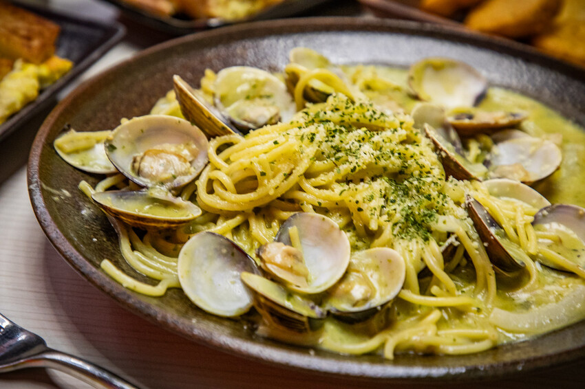 蛤蠣義大利麵(青醬),這個真的是出乎我意料的好吃啊,一般早餐店的義大利麵通常都很簡單,拿靠的義大利麵根本可以原地出道單獨做義大利麵品牌了,青醬味道相當濃郁,蛤蠣也是很敢給,超多又大顆,重點是麵體的熟度掌握非常的恰當,非常好吃!